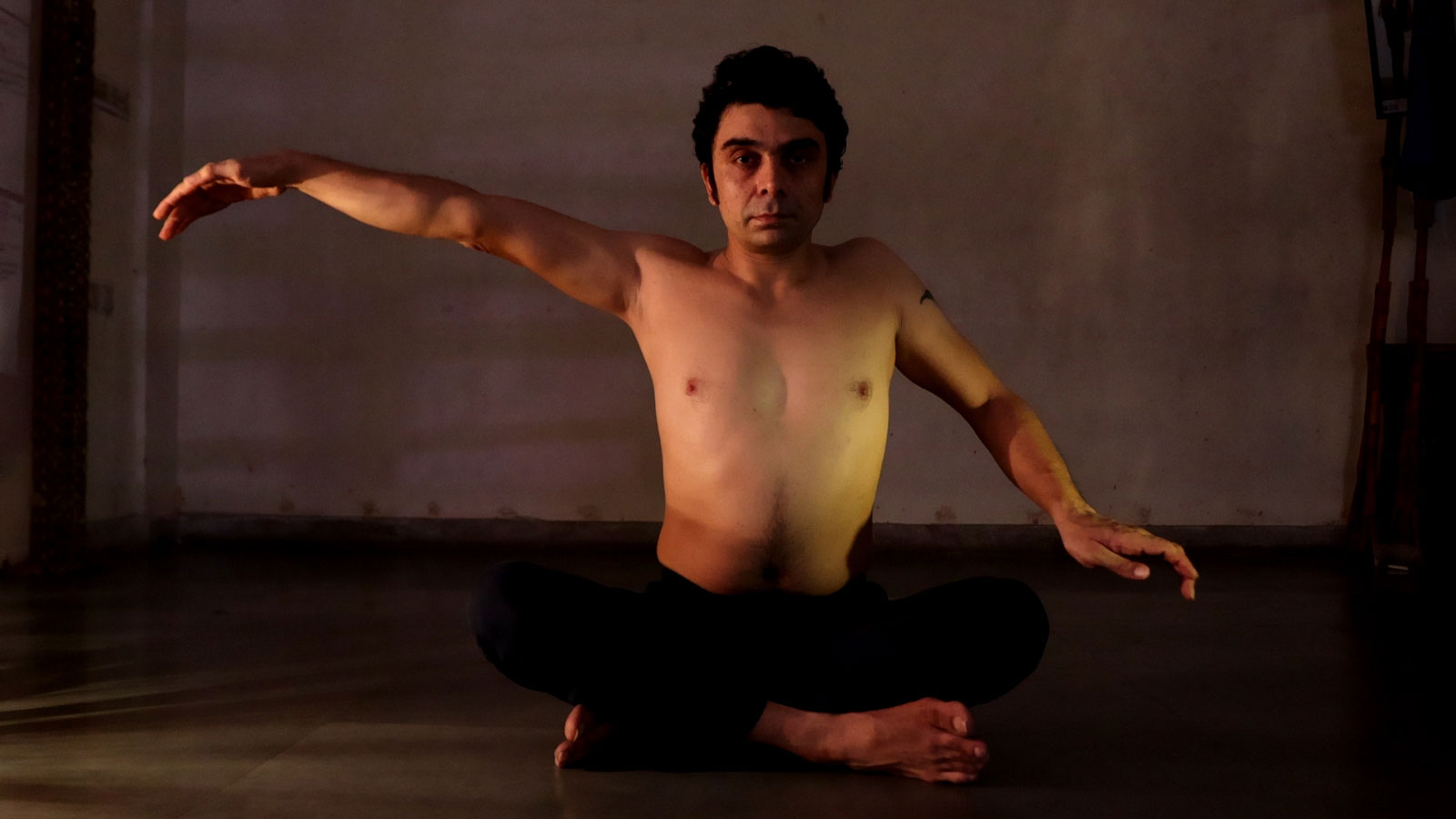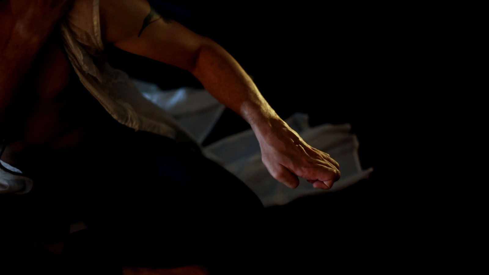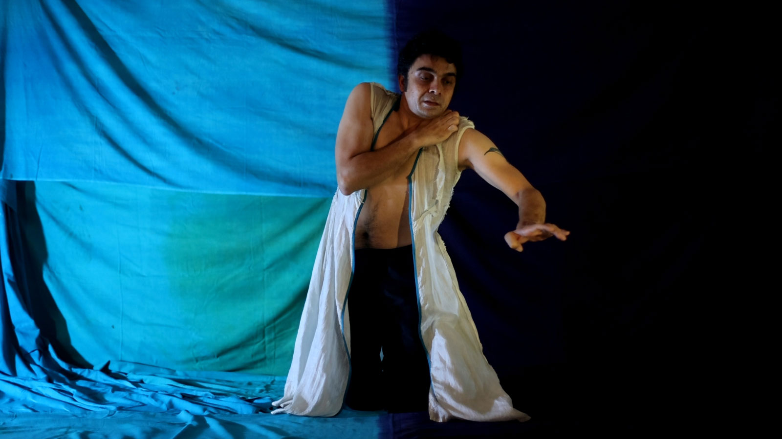 We made the film during lockdown restrictions. I created the choreography at home, sharing videos with Kunal. It was shot in one 6-hour shoot in the Ranan Workspace, making use of material and lamps we had access to in the space, with Amlan Chaudhuri crafting creative and hands-on scenography.