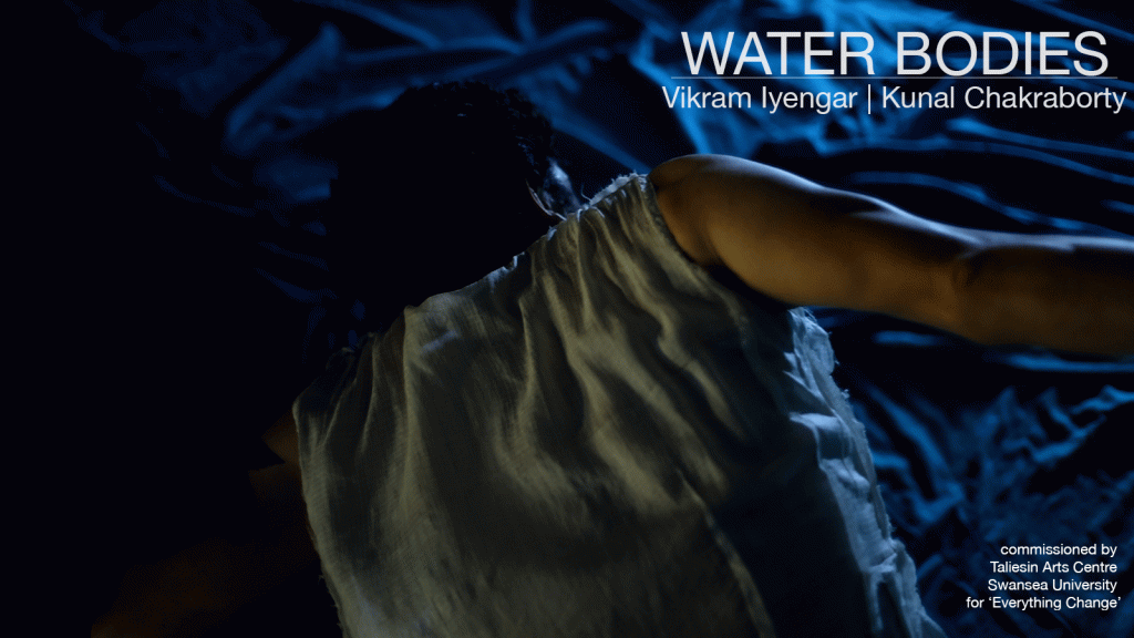 While India was locked down during the devastating second wave of COVID19, I received an invitation from Simon Coates (who I had first met during Egin in July 2019), to be part ‘Newid Popeth / Everything Change’ – an ambitious programme of interdisciplinary discussions, think-ins, online screenings and live performance events taking place in June 2021 in Wales, Bangladesh and online centred around creativity and the climate crisis. He asked me to participate in the panel on ‘Change Water’, and also create a 5-minute artist provocation to kick it off. The result is ‘Water Bodies’ – a dance-film in collaboration with filmmaker Kunal Chakraborty.